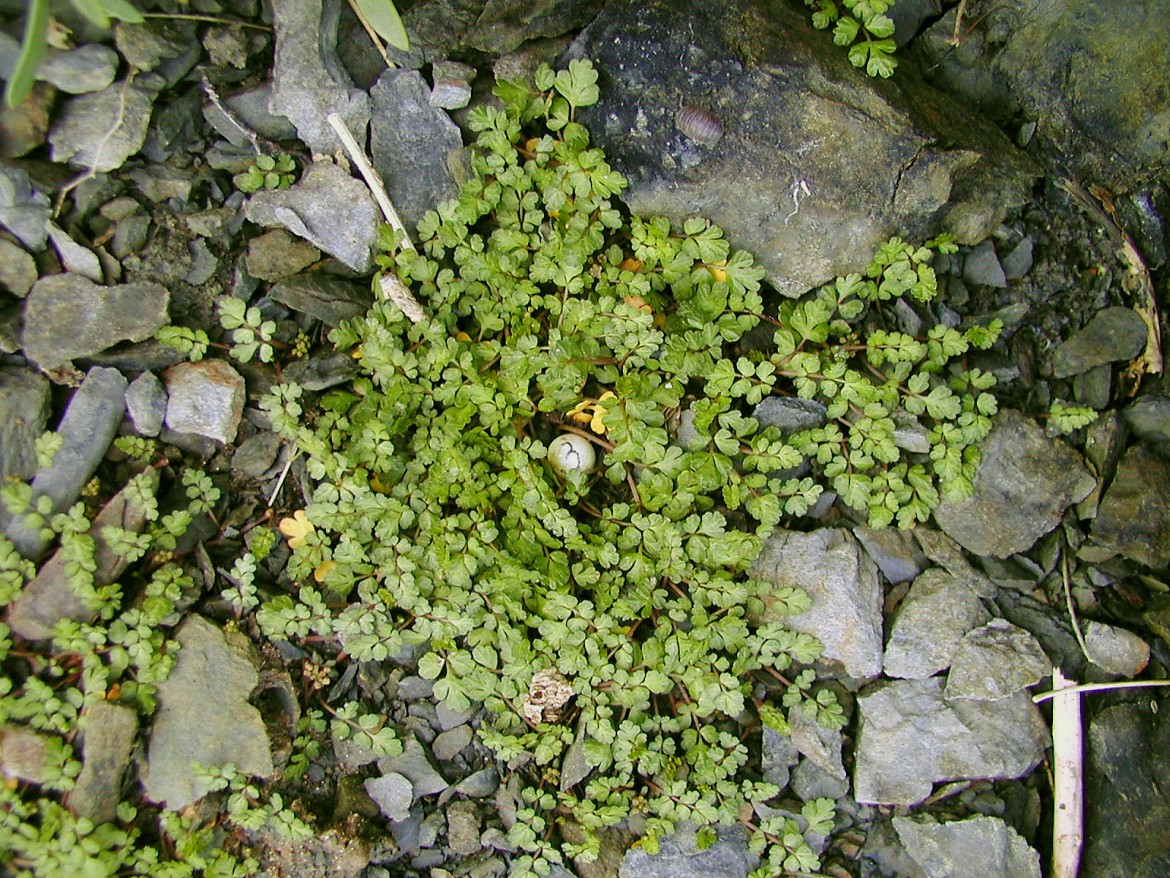 Apium bermejoi is endemic to the Balearic Islands, and occurs in the eastern part of the island of Minorca. There it is only found in two small areas separated by a rocky zone about 200 m wide. The total population numbers less than 100 individuals with strong yearly fluctuations and covers an area of just a few dozen square meters. This species grows in stream beds (Habitat 5.2: Seasonal-Intermittent-Irregular Rivers, Streams, Creeks) which are dry during summer and even during dry winters. In the wild it prefers thin acidic soils within small rock depressions, but under cultivation it is indifferent to the type of substrate, requiring only moderate sun exposure.
